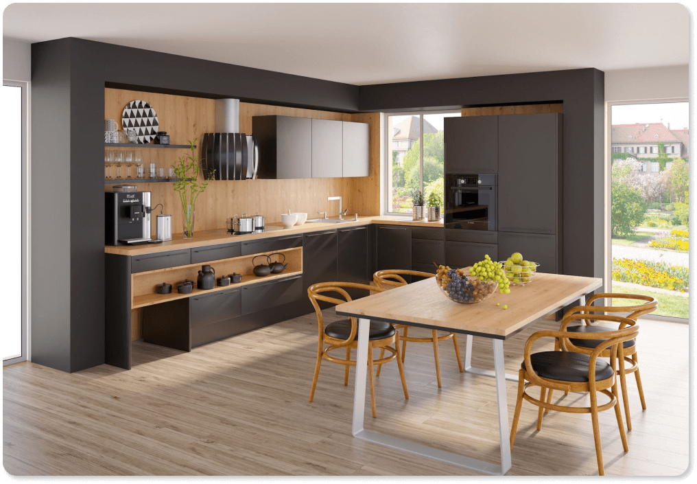 Pri izdelavi kuhinj po meri obstaja veliko različnih dejavnikov, ki vplivajo na končno ceno. Najbolj natančno ceno lahko prejmete med samim načrtovanjem kuhinje v studiu. Naši strokovni svetovalci za vsako stranko pripravijo individualno ponudbo po meri glede na njene zahteve in želje.